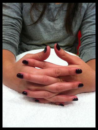 Gel nail color promises so much. Thicker nails, color that lasts 2-3 weeks, or until you soak it off at your next appointment. It’s like fake nails without all the fakeness, and like nail polish without the almost immediate chip-off (well, for me at least…I could chip a nail as soon as the polish dried – that is, if I didn’t smudge it first). I paid my 40 bucks and picked my favorite color – a deep, plum-like purple. I’ve always loved the look of square-shaped, super short, dark laquered nails, and by golly for the first time I had them!