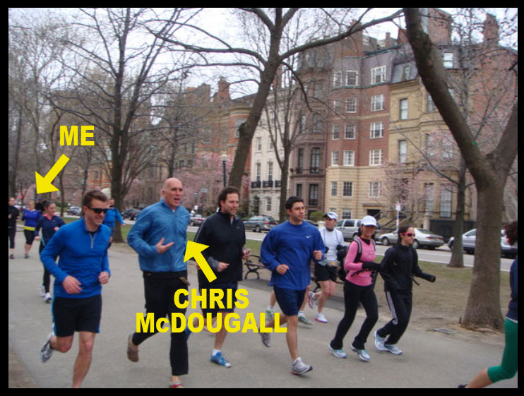 I wanted to thank Mr. McDougall for writing the book that would do such a thing for me, last weekend when I finally caught up to him on the bridge over the Charles River Basin. But instead I choked, and ended up asking him why he wasn’t running barefoot. It turned out okay anyway, and I even got a compliment on my running form. Maybe if I read the book again, I can learn to be zen enough to talk to celebrities without that residual “OMG I’m such a GEEK” side-effect. One can only hope.