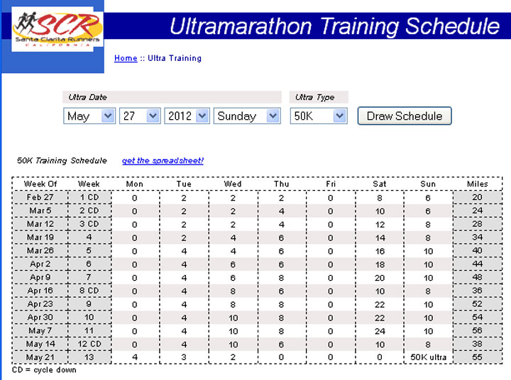 Trisha – you Rock – you are going to do great!! I did my first Ultra last year a very technical mountain trail one – – I found it easier and less taxing than the road marathons I had run and far more enjoyable. Your training plan looks great if I could offer a couple of pieces of advice is try and run on the course itsaelf in advance of at al possible . I ran my course in sections on differeing weekend and it really helped on race day knowing what I had to expect. Secondly defintely do some core strengthening excercises you willbe on your feet /running for much longer than you probably have ever been and a strong core will really help in terms of the end of the race and in terms of preventing injury due to poor posture , I did six weeks of core conditioning before my race and I think it was the difference between a DNF and a finish time I was over the moon about. Either way I wish youall the very best and am excited to hear about your progress