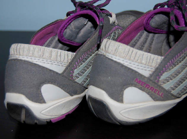 Fast forward to this spring, when my contact at Merrell tells me they have a wide-width version of this shoe now. Imagine my drooling surprise! I was so glad to get them in the mail – it was like being reunited with a long-lost friend. A long lost friend who’s changed her ill-fitting ways and has come back as an improved version of herself. And in gray and purple.