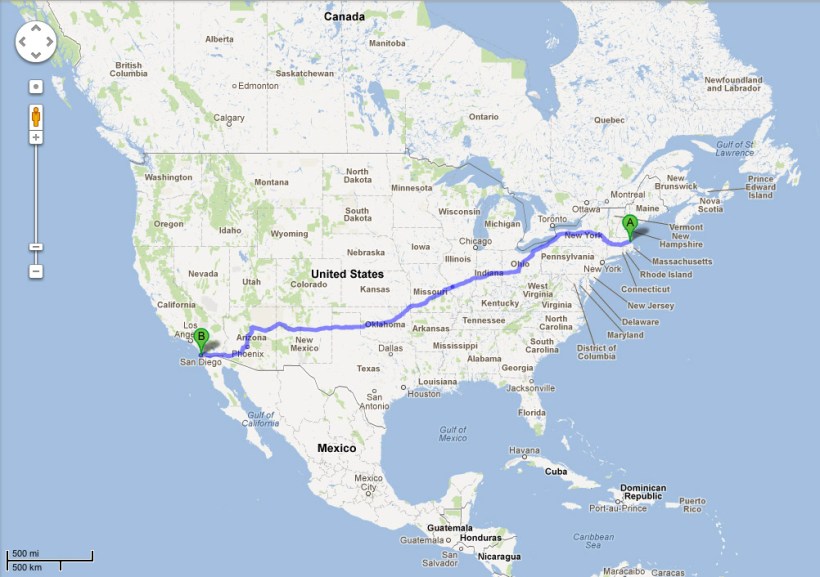 So then once all the big stuff was taken care of and I could breath again, there were all the little details left to consider. How are we going to get our cat across the country, since he can barely make it down the street in a car? Suddenly my friend Breha offers to take him into her home for a few weeks and pop him on a plane for us. How are we going to drive two cars and not die of boredom? Poof! – my cousin Alysa offers to accompany us on the drive. Now, I’m not the Religious/superstitious type, but if I was, I’d be telling you that somebody “up there” was making attempts to answer every conundrum we run into with a quick and definitive solution, to keep us moving smoothly toward our goal of dipping our feet into the Pacific Ocean with a Carne Asada burrito in each hand.