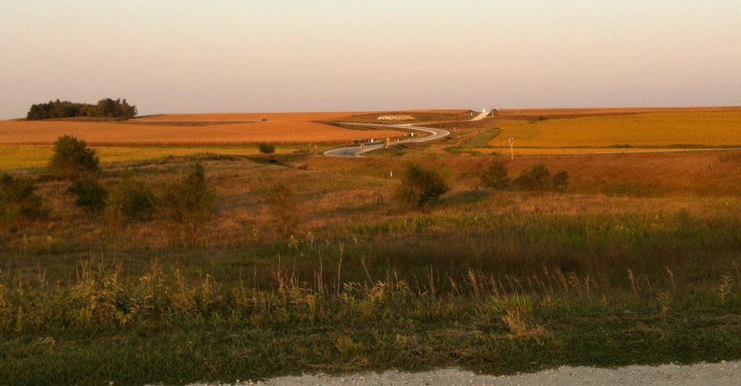 The one car repair shop for 30 miles (“Louie’s”) was closed for the night, so we had to wait until the morning to figure out the problem (Shawn wrote to me in a text, “Tell them to tow your car to a Honda dealership.” Which brought on another fit of laughter). And by now, Shawn was still 45 minutes from arriving to meet Alysa and me. We were hot, tired and so sick of sitting on our asses that we immediately changed and went for a two mile run in the corn fields before the sun went down. It was probably the prettiest run I’d ever done…and also the scariest, because the tune to “Dueling Banjos” kept creeping up in my head while we ran along the gravel roads that cut through the 5 foot high rows of corn. Corn that, might I add, could have hidden our bodies quite well, had we not been running fast enough. So we ran pretty damn fast.