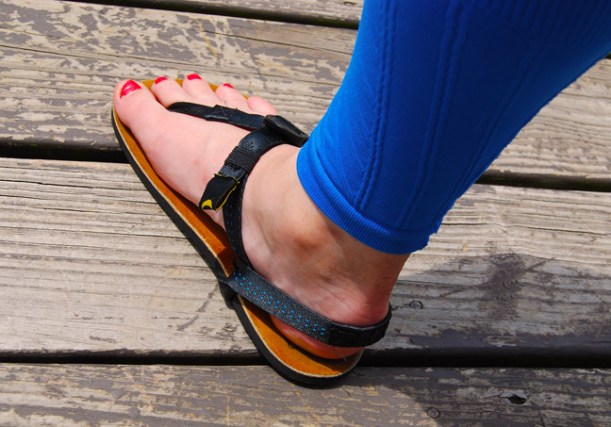 Lacing aside, running in the Luna sandal is really, really FUN. The soles are truly comfortable. I love that I have air on my toes instead of hot fabric, and yet I don’t feel like I’m missing out on any of the positives of wearing shoes. I think they help me keep my form a little better than shoes, too. The first few times I wore these I got hot spots; but then it stopped. Since then my form has felt a little more natural, and I have been able to run farther barefoot, as well.