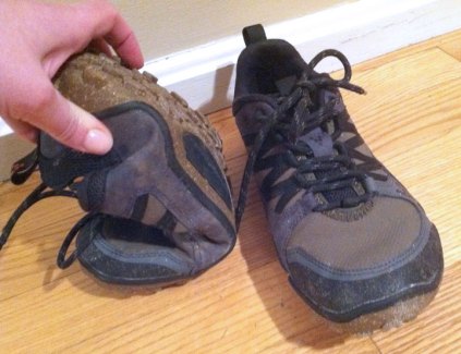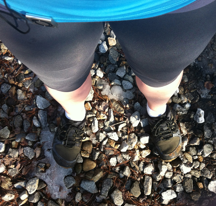 The only painful thing that happened with these shoes is at one point I clipped my right ankle with the sandy heel of my left shoe, while making a sharp turn on some loose dirt. It dug a pretty good chunk of flesh out of my ankle bone. These are some rugged trail shoes, they’re like little trail-chewing monsters. The tread isn’t all that deep, and there hasn’t been any ice or slippery ground available for me to test on, but so far they’ve been great at keeping me upright over rocks, roots and gravel.
