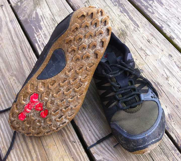 Since wiping the drool off, I’ve put about 25 trail miles on these girls, including last weekend’s 13 mile long run. Some quick and relevant stats on these: they have 4mm zero-drop Vibram rubber soles with a 1mm thick rock plate that protects your feet from the occasional sharp, pointy rock that you didn’t see. The uppers are made of microfiber mesh and synthetic leather, and there is a nifty little rubber bumper at the toe – perfect for the 300 or so rocks I inevitably end up kicking around the trails during my runs. Merrell’s Omni-Fit lacing system keeps the laces evenly tight throughout. It’s a slick design with some pretty sound details overall.