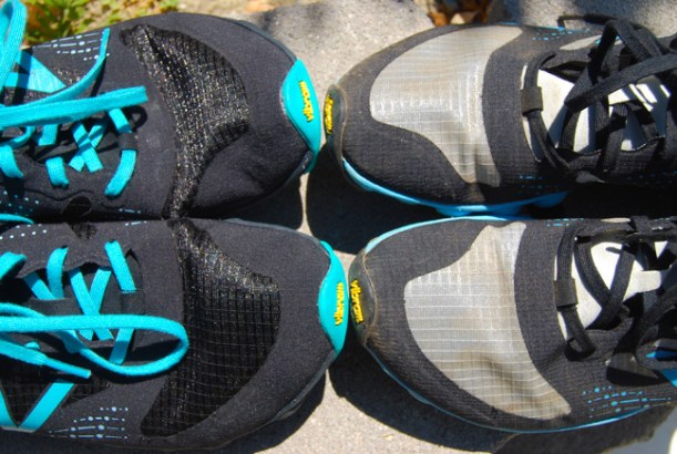 To expound on my point about the stiffer sole, I want to say that I felt a lack of control in this shoe, especially going downhill. The grip is nice and sticky, sure, but I still want better perceptual control over my foot landings. A shoe like this doesn’t allow my foot to curl downward at all, and the rock plate keeps me from forming my sole around the rocks and debris like it would naturally. So for me, overall this shoe didn’t feel safe as I got more tired (and sloppy) several miles into a run.
